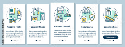 Wall mural airport guide onboarding mobile app page screen with concepts. commercial flight boarding walkthroug - Wall murals Wall mural airport guide onboarding mobile app page screen with concepts. commercial flight boarding walkthroug - Wall murals