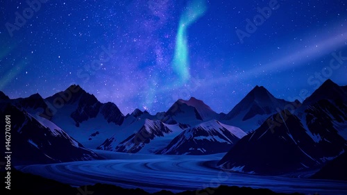 Alaska aurora and milky way galaxy magic above glaciers and mountains time lapse tilt up generative Wall mural