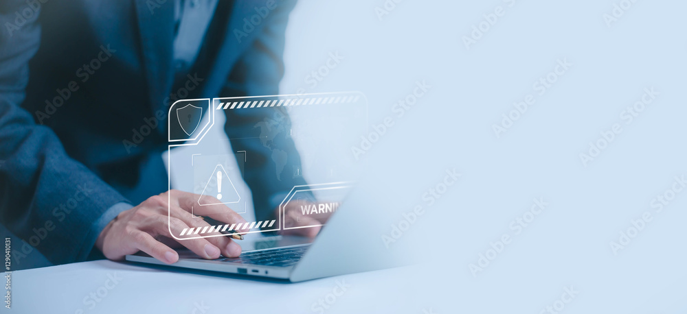 The watermark will not be included on Wall mural.: Alert cyber attack, symbol threat on the network - concept of a security warn system for hacker attac