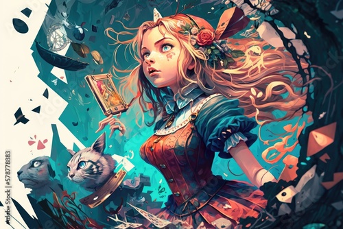 Wall mural alice in wonderland related artwork. wild celebration. image generation on a computer. generative ai