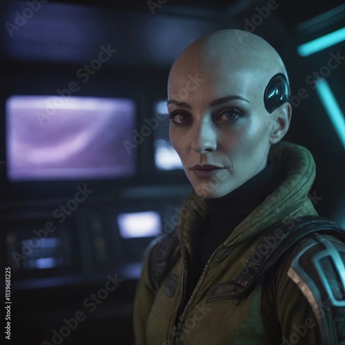 Wall mural : Alien creature on spaceship, realistic illustration