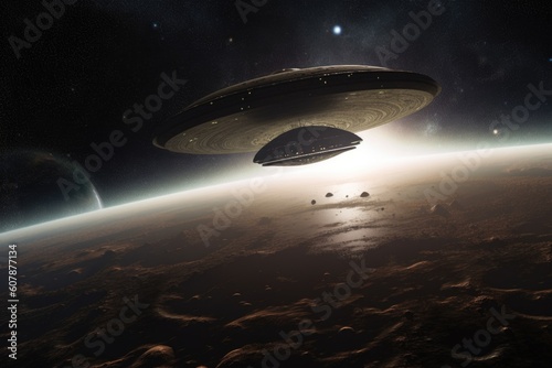 Wall mural : Alien life form floating in space, with view of distant planets and stars, created with generative a