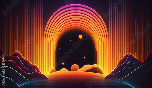 Wall mural : Alien planet and space abstract background with circles retro neon psychedelic background new qualit