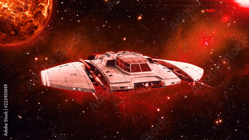 Wall mural alien spaceship in deep space, ufo spacecraft flying in the universe with planet and stars in the ba - Wall murals Wall mural alien spaceship in deep space, ufo spacecraft flying in the universe with planet and stars in the ba - Wall murals