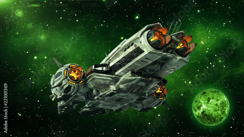 Wall mural alien spaceship in deep space with planets and stars in the background, ufo spacecraft flying in the - Wall murals Wall mural alien spaceship in deep space with planets and stars in the background, ufo spacecraft flying in the - Wall murals