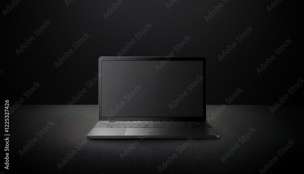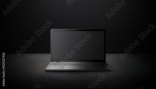 The watermark will not be included on Wall mural.: All black minimal concept with blank black single material computer at abstract dark background - gen