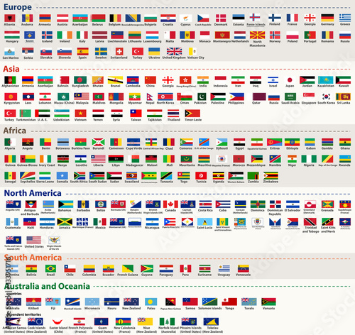 Wall mural all world flags arranged in alphabetical order and singled out by continents vector set - Wall murals Wall mural all world flags arranged in alphabetical order and singled out by continents vector set - Wall murals