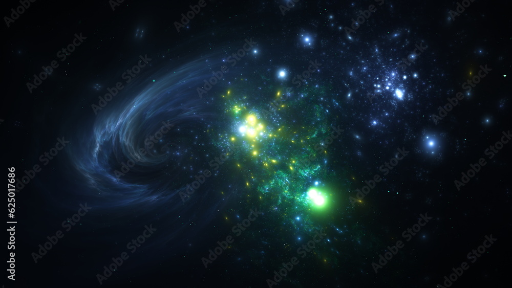 Wall mural : Amazing galaxy cluster of massive stars in space - boundless universe, gas nebula in outer space - 3d