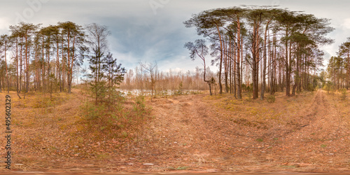 Wall mural amazing landscape with blue sky at spring trees without greens and grass 3d spherical panorama with