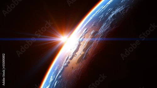 Wall mural amazing view of the earth from space and glowing atmosphere in the rays of the sun. 3840x2160. seaml