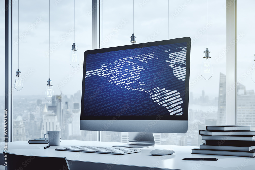 Wall mural america map on modern computer monitor, big data and digital technology concept. 3d rendering - Wall murals Wall mural america map on modern computer monitor, big data and digital technology concept. 3d rendering - Wall murals