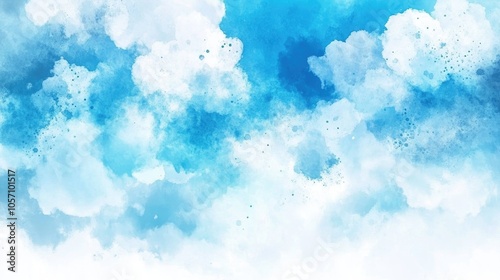 The watermark will not be included on Wall mural.: An abstract background featuring splashes that evoke a bright blue sky with soft fluffy clouds in wa