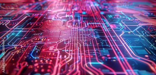 The watermark will not be included on Wall mural.: An abstract background of circuits in pink and blue with the concept of advanced technology