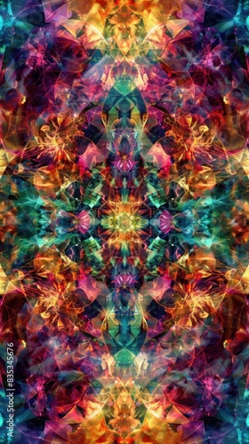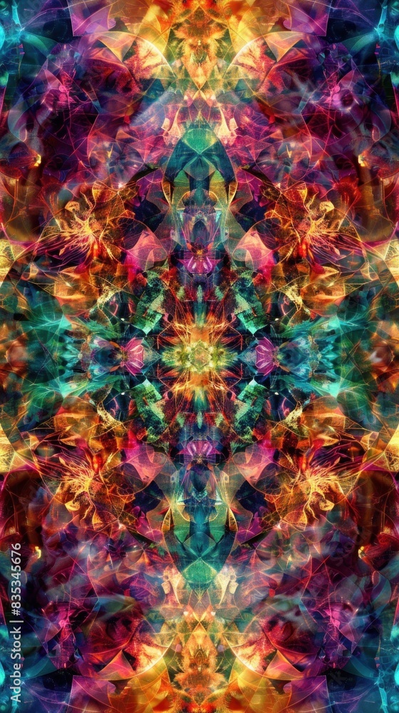 The watermark will not be included on Wall mural.: An abstract background that feels like a digital kaleidoscope, with a mix of colors and patterns tha