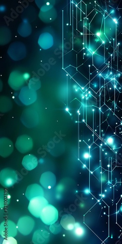 Wall mural an abstract blue and green technology background with hexagons and geometric shapes with blur.