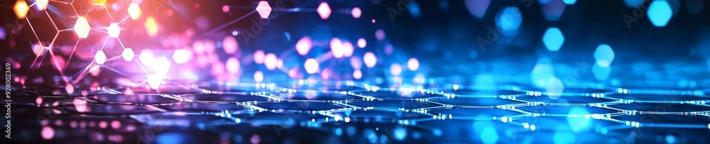 Wall mural an abstract blue and green technology background with hexagons and geometric shapes with blur.