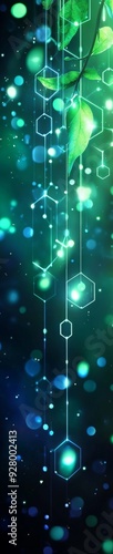 Wall mural an abstract blue and green technology background with hexagons and geometric shapes with blur.