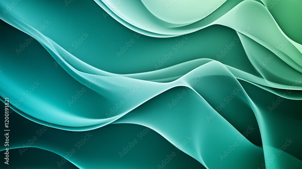 The watermark will not be included on Wall mural.: An abstract composition featuring flowing waves in shades of teal and mint, creating a serene and ca