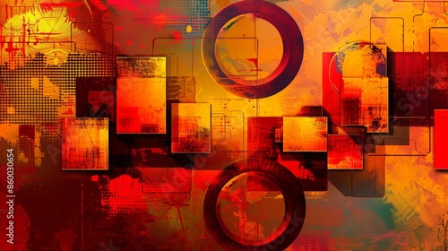 Wall mural an abstract composition of geometric shapes, featuring 3d blocks and circles intersecting with squar - Wall murals Wall mural an abstract composition of geometric shapes, featuring 3d blocks and circles intersecting with squar - Wall murals