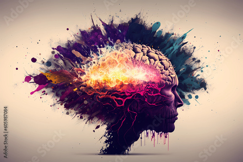Wall mural an abstract concept of a colorful brain exploding with ideas