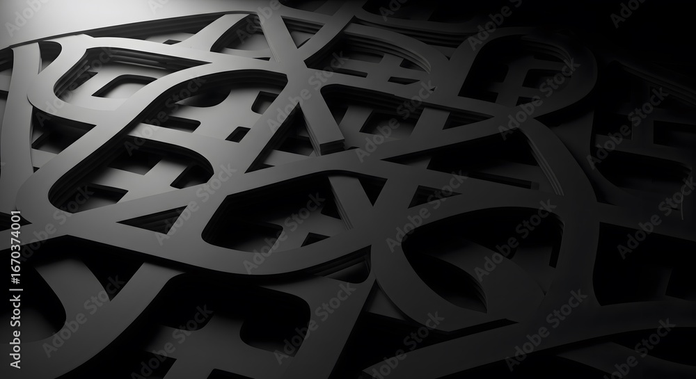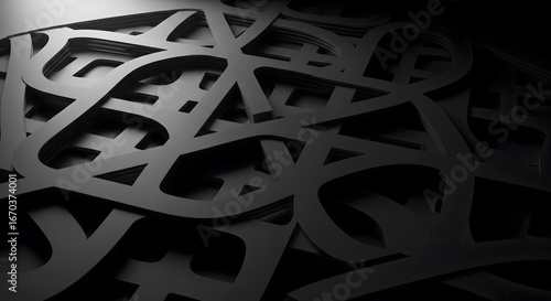 Wall mural an abstract dark background with an intricate pattern of interlocking shapes. a modern, complex, and