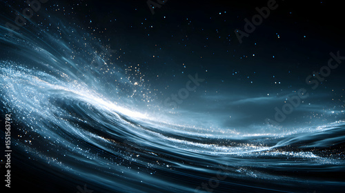 Wall mural an abstract depiction of a cosmic wave with sparkling particles moving through the dark space