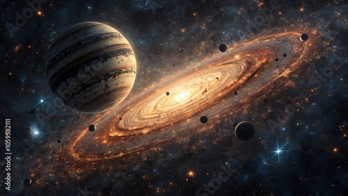 Wall mural an abstract depiction of outer space, with clusters of stars and planets set against a deep black vo - Wall murals Wall mural an abstract depiction of outer space, with clusters of stars and planets set against a deep black vo - Wall murals