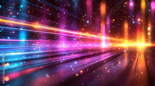 Wall mural : An abstract design featuring multicolor digital lines to represent speed and movement, set against a