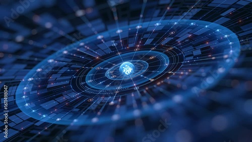 Wall mural an abstract digital background features a central glowing sphere surrounded by intricate interconnec