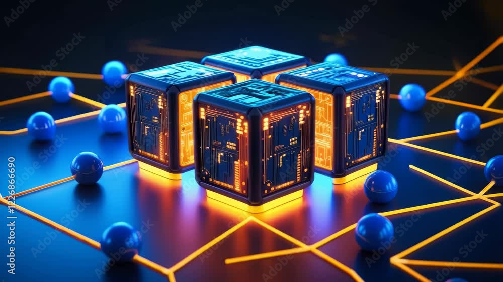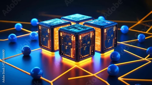 Wall mural an abstract futuristic, abstract technology 3d cubes structure, with intricate circuit patterns on t