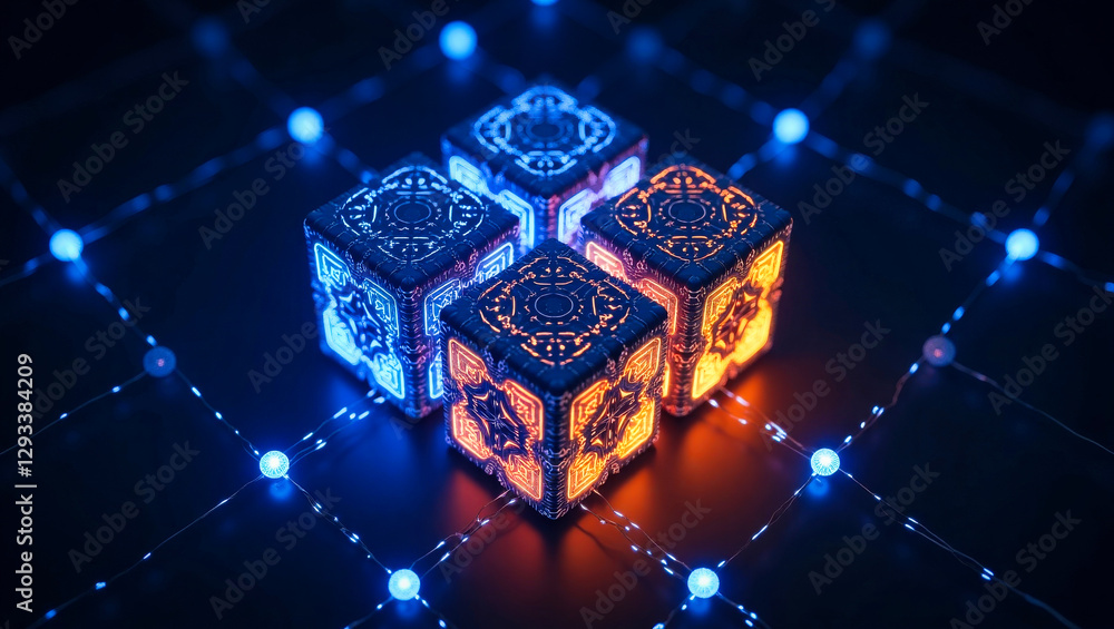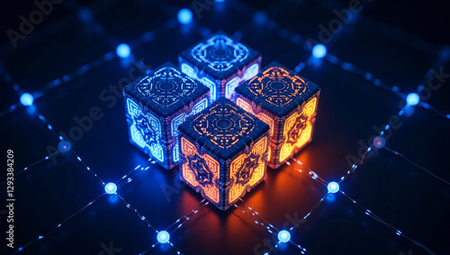 Wall mural an abstract futuristic, abstract technology 3d cubes structure, with intricate circuit patterns on t
