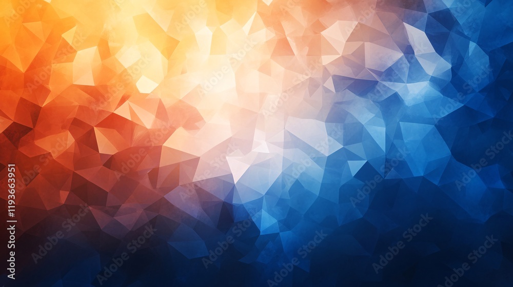 The watermark will not be included on Wall mural.: An abstract geometric pattern blending warm oranges and cool blues, creating a vibrant and dynamic v