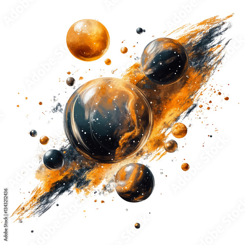 The watermark will not be included on Wall mural.: An abstract illustration displaying celestial spheres with cosmic background elements