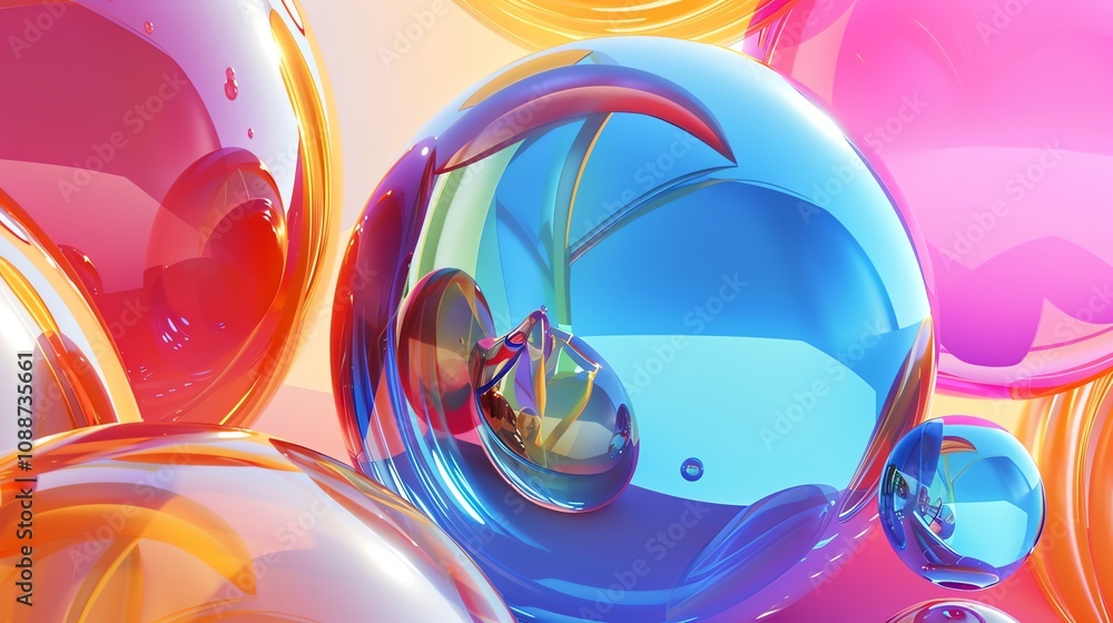 The watermark will not be included on Wall mural.: An abstract image of colorful, glossy spheres with a hint of iridescence -