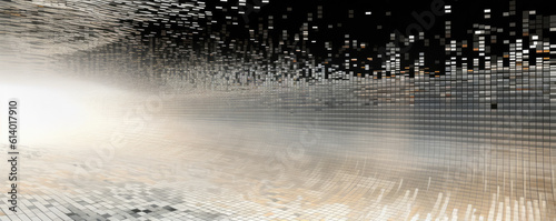 The watermark will not be included on Wall mural.: An abstract panoramic representation of white binary code flowing in a vast digital space, symbolizi