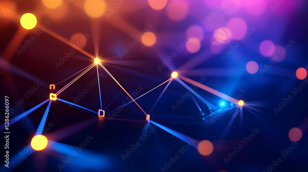 Wall mural an abstract representation of a digital network, featuring glowing lights and interconnected lines i - Wall murals Wall mural an abstract representation of a digital network, featuring glowing lights and interconnected lines i - Wall murals