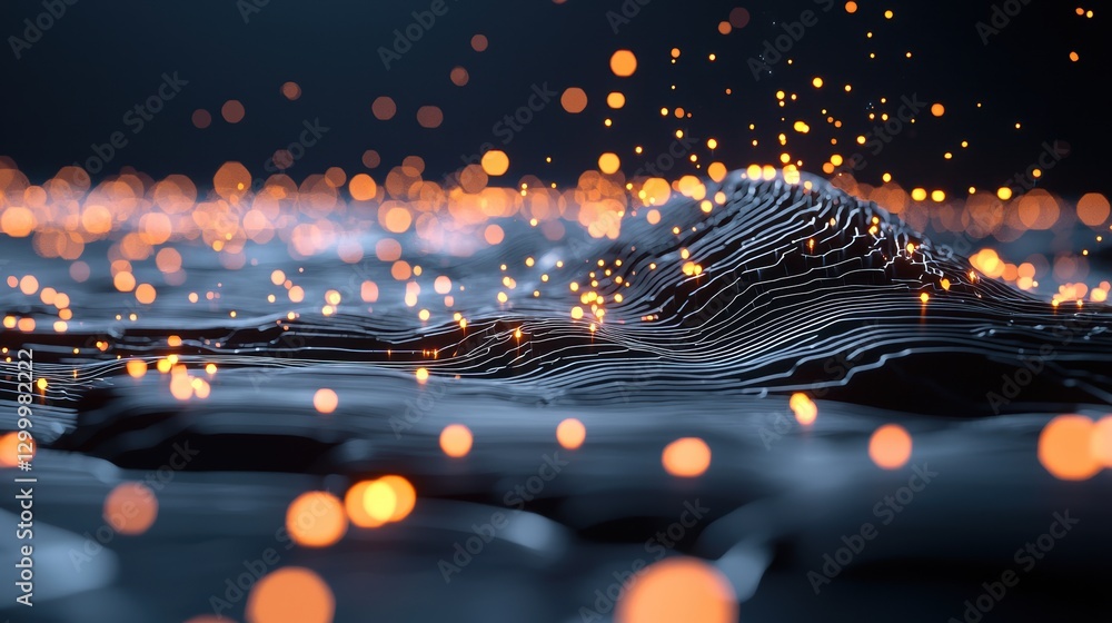 Wall mural : An abstract representation of a future world map, with continents morphing and shifting, connected b