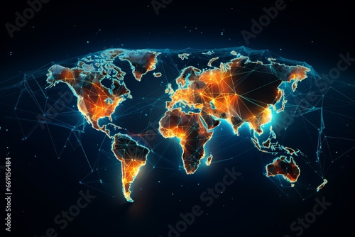 Wall mural an abstract representation of a world map intertwined with trade routes and financial networks, symb