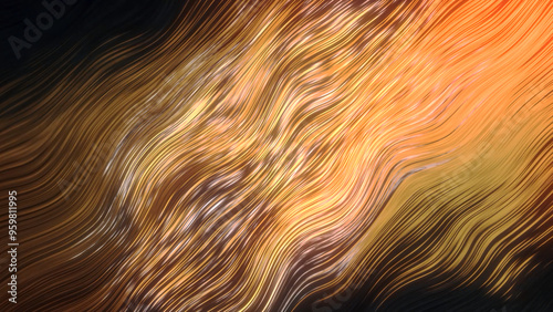 The watermark will not be included on Wall mural.: An abstract representation of golden flowing lines set against a dark background vision