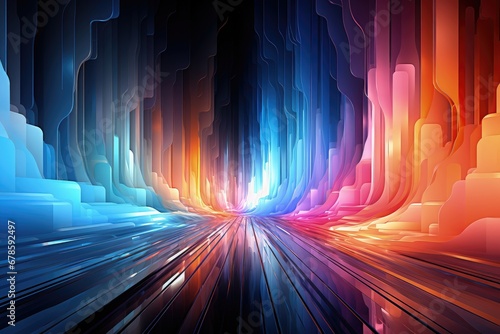 The watermark will not be included on Wall mural.: An abstract sci-fi wallpaper features an artificial neon-color cave, creating a futuristic compositi