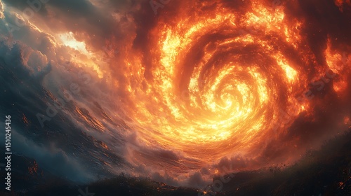 Wall mural an abstract swirl of fire and clouds capturing the power of an ethereal cosmic event.