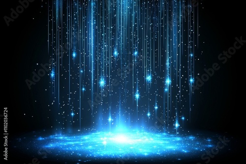 Wall mural an abstract technological background with blue nature and particle effects. - Wall murals Wall mural an abstract technological background with blue nature and particle effects. - Wall murals