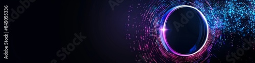 Wall mural an abstract technology circle with computer code in vibrant purple and blue on a black background.