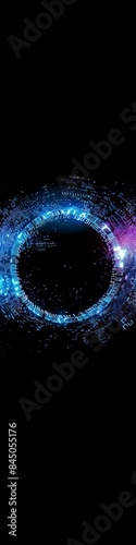 Wall mural an abstract technology circle with computer code in vibrant purple and blue on a black background. - Wall murals Wall mural an abstract technology circle with computer code in vibrant purple and blue on a black background. - Wall murals