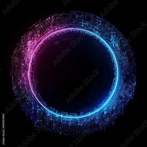 Wall mural an abstract technology circle with computer code in vibrant purple and blue on a black background.