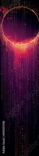 Wall mural : An abstract technology circle with computer code in vibrant purple and blue on a black background -