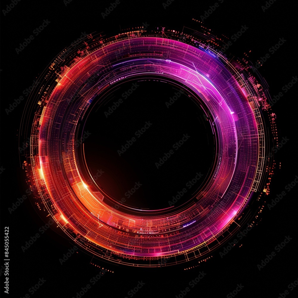 The watermark will not be included on Wall mural.: An abstract technology circle with computer code in vibrant purple and blue on a black background -