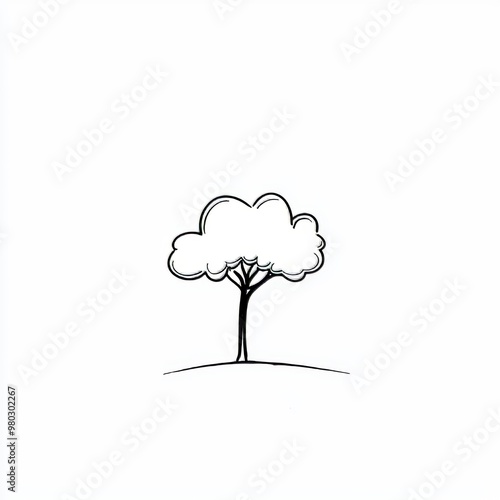 The watermark will not be included on Wall mural.: An abstract tree drawn in a continuous line art style on a white background - black linear sketch iso