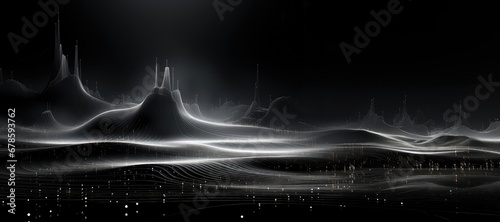 The watermark will not be included on Wall mural.: An abstract wallpaper with a black background, in a wide format, creating a futuristic composition t