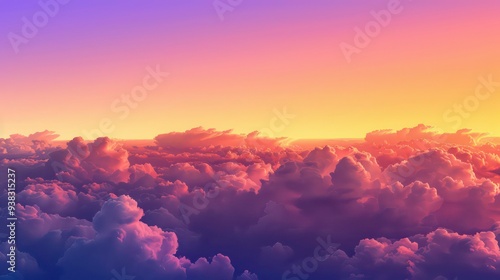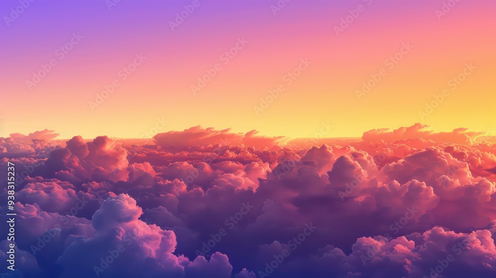 The watermark will not be included on Wall mural.: An aerial view of a vast sea of clouds with a colorful gradient sky -
